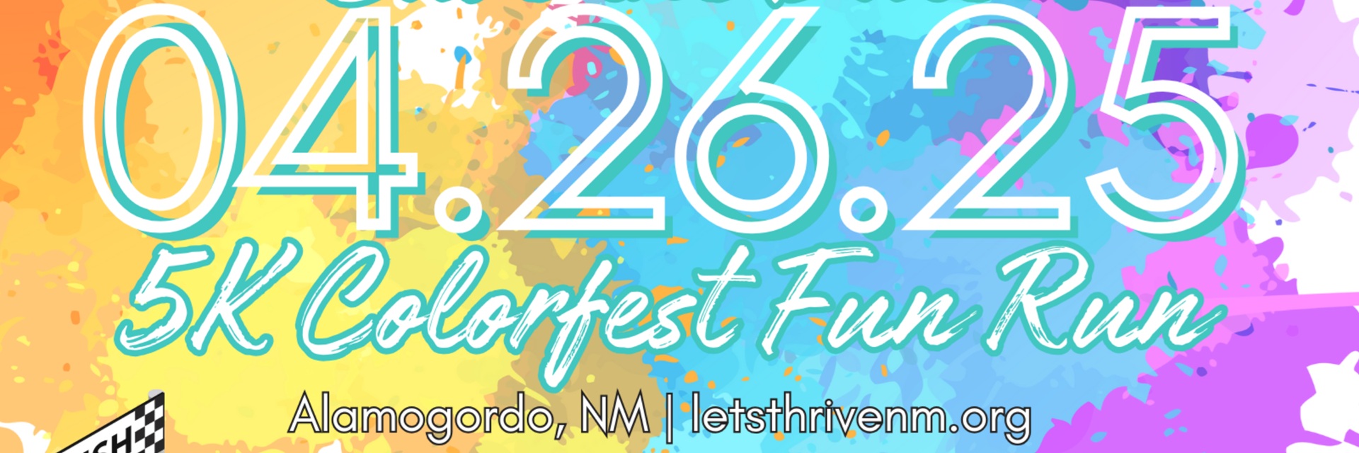 Get ready to add some color to your run! Join us for the First Annual Colorfest Fun Run on Friday, April 26, 2025, in Alamogordo, NM. This exciting 5K fun run is all about color, energy, and community spirit, making it perfect for participants of all ages and fitness levels. As you go through the course, you’ll be showered in vibrant colors, creating a fun and unforgettable experience. Whether running, walking, or just being there for fun, this event is a great way to get active and celebrate with friends and family. Register today and get ready to run in color!  Colorfest Fun Run 5K