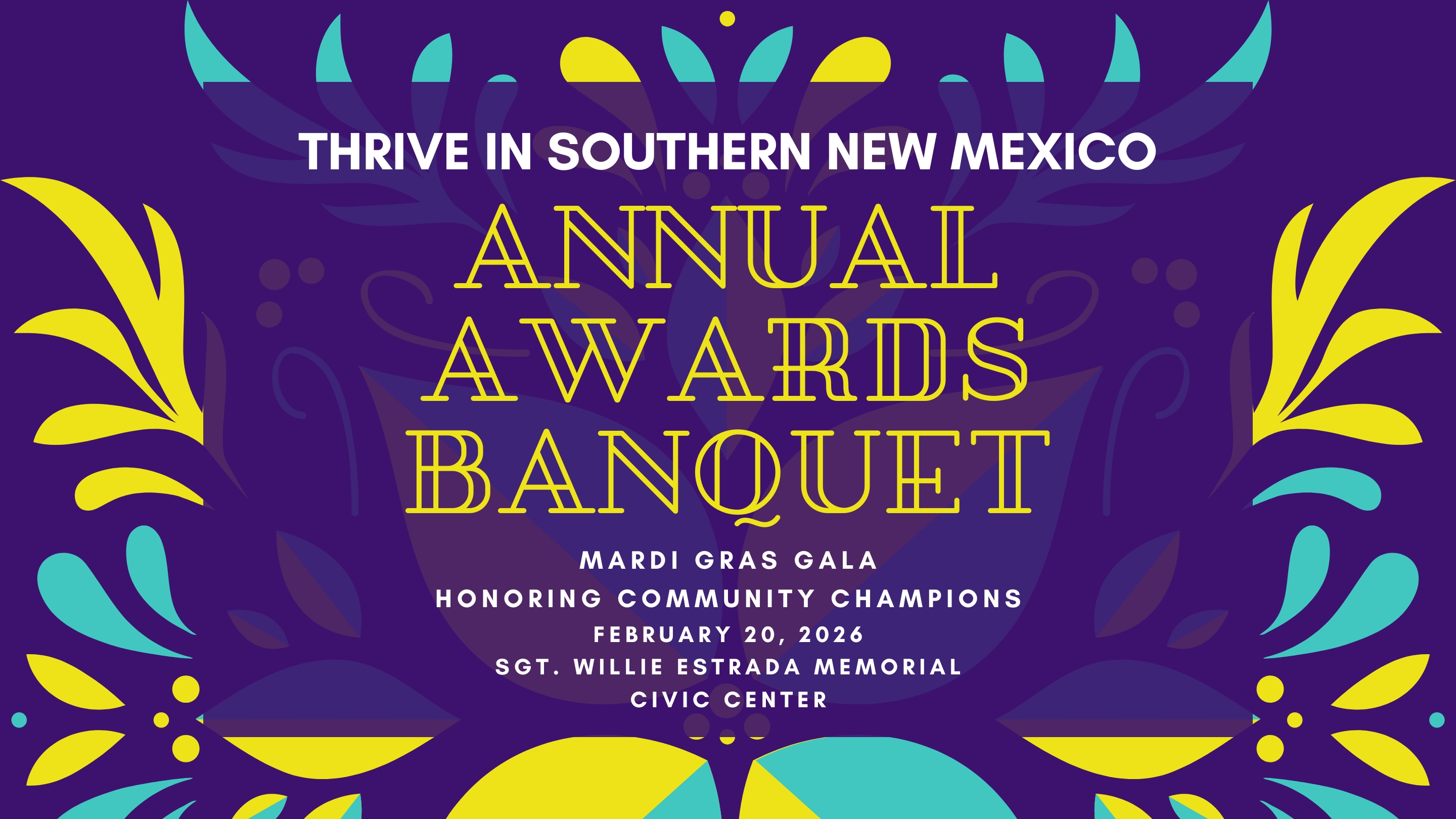 Join for an unforgettable evening of celebration, color, and community spirit at THRIVE in Southern New Mexico's Annual Awards Banquet! This year, we're bringing the magic of Mardi Gras to Southern New Mexico as we honor the extraordinary businesses, partners, and individuals who make our mission possible.